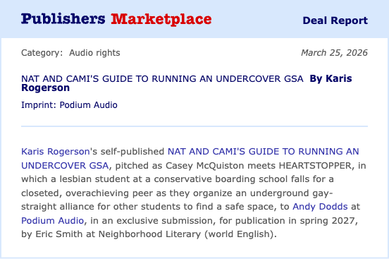 The actual title? Nat and Cami's Guide to Running an Undercover GSA. It was too long for our news feed, oops! But hooray! Congrats to Karis and her YA heading to Podium!