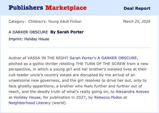 Her latest, A Darker Obscure, was scooped up by Holiday House! Watch out for it in 2027.